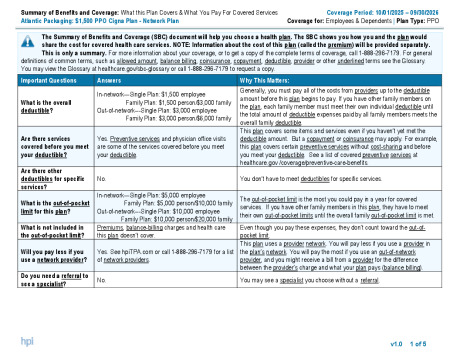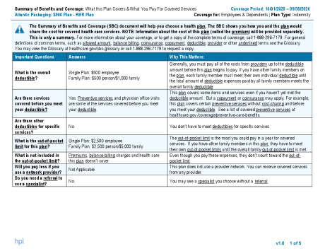 Atlantic Packaging offers two medical plans administered through our Third-Party Administrator, Health Plans, Inc. The chart below provides a brief outline of what is offered.ย