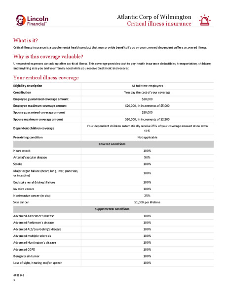 Critical illness insurance pays a lump-sum benefit if you are diagnosed with a covered illness or condition on or after your coverage effective date. Coverage is available for yourself and your eligible dependents.
