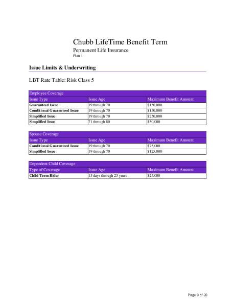 Lifetime Benefit Term Issue Limits and Rate Tables
