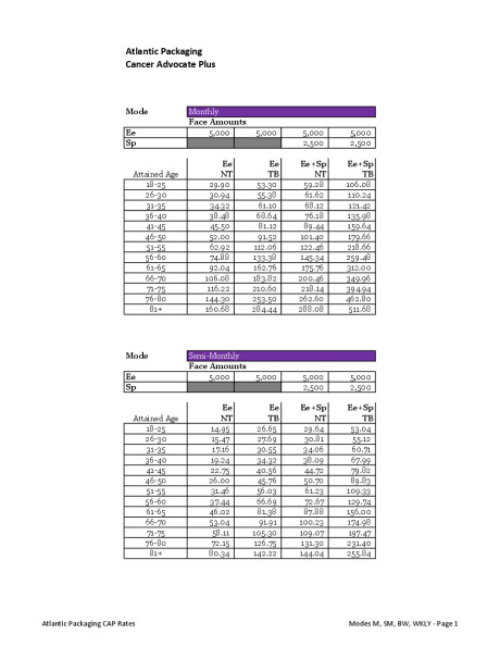 • Cancer Recovery First Payment: $2,500 Employee ($1,250 for Spouse)